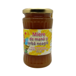Acest amestec de miere de mana si iarba neagra rezulta prin centrifugarea ramelor dupa ce ne intoarcem din pastoral din zona unde avem iarba neagra. Prin centrifugare, pe langa mierea obisnuita (in acest an miere de mana si o miere premium de care o sa va povestec altadata) iese si o parte din mierea de iarba neagra. Dupa aceasta centrifugare ramane in rame doar mierea de iarba neagra.